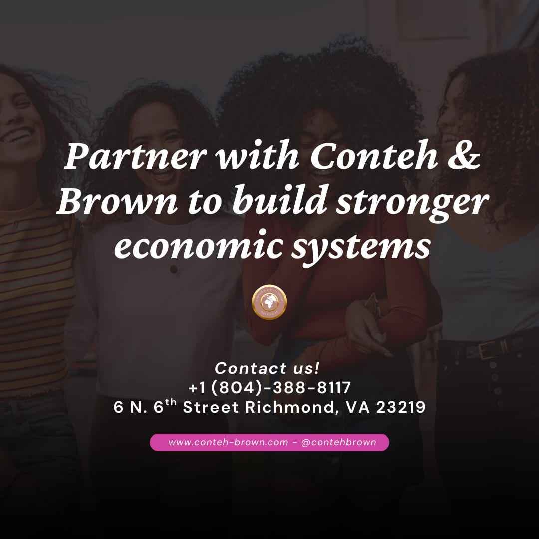 Founded in Glen Allen, Virginia in 2017, Conteh & Brown Group was built on a truth the market has been slow to reward: women don't just belong in business — they are its most formidable architects. As a women-owned, family-operated firm, our team spans clinical psychology, law, HR, social work, and business analysis — unified by a shared understanding of what it costs to build while the system works against you.